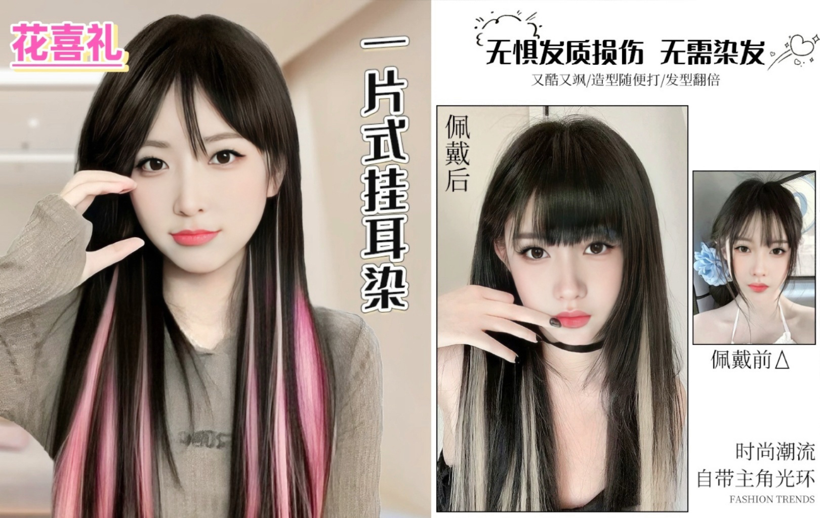 在潮流设计上,团队融合街头文化与次元美学:Y2K 荧光挑染片适配蹦迪场景,汉服刺绣发片解锁国潮新中式,AR 感应发片让音乐节造型自带灯光特效。从早八通勤的伪素颜初恋头,到夜场派对的赛博朋克短发,花喜礼用发片定义「人设自由」—— 你的发型,就是无声的个性宣言。